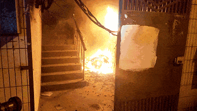 4月8日,湖南長沙。長沙縣圣力華苑小區(qū)一住戶家堆放有雜物的陽臺突然燃起明火,好在業(yè)委會及物業(yè)的工作人員及時發(fā)現(xiàn),并第一時間展開處置,大家快速控制住火勢,并在5分鐘內(nèi)成功將火撲滅。