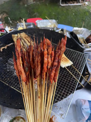 費了很大的勁兒把炭火點燃后,趁著旺盛的炭火,燒烤正式拉開了帷幕。