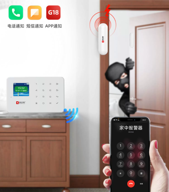 門磁探測(cè)器:一旦有盜賊破門而入,門磁探測(cè)器監(jiān)測(cè)到門打開之后就會(huì)向報(bào)警主機(jī)發(fā)送報(bào)警信息,報(bào)警主機(jī)接收到門磁探測(cè)器發(fā)來(lái)的報(bào)警信息后,不僅會(huì)現(xiàn)場(chǎng)聲光報(bào)警震懾盜賊,而且還可通過電話、短信、手機(jī)APP信息等方式向用戶遠(yuǎn)程告警。