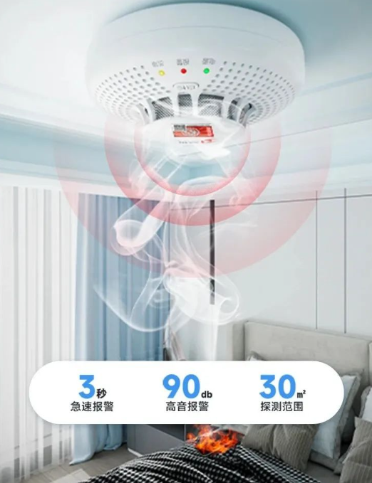 煙霧探測(cè)器:在客廳、臥室安裝煙霧探測(cè)器,一旦該設(shè)備檢測(cè)到火災(zāi)發(fā)生時(shí),就會(huì)立刻發(fā)出高分貝的報(bào)警聲,同時(shí)通過報(bào)警主機(jī)向用戶遠(yuǎn)程告警,為滅火或者人員逃生爭(zhēng)取時(shí)間,確保家庭人員人身安全和家庭財(cái)產(chǎn)安全。