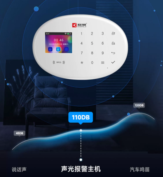 在功能方面,它可以無(wú)線連接99個(gè)紅外、門磁、煙霧、燃?xì)狻⒕o急按鈕等配件,并能分區(qū)設(shè)防,全方位保障家庭人員安全和財(cái)產(chǎn)安全。