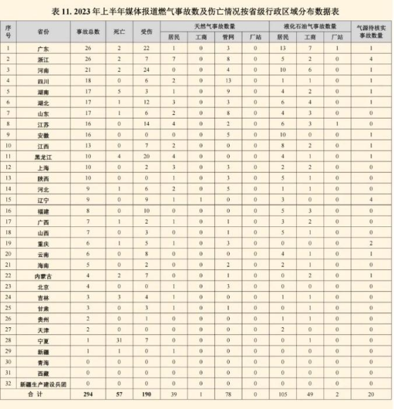 據(jù)中國城市燃?xì)鈪f(xié)會(huì)安全管理委員會(huì)發(fā)布的《2023上半年全國燃?xì)馐鹿史治鰣?bào)告》統(tǒng)計(jì),2023年上半年共收集到媒體報(bào)道的國內(nèi)(不含港澳臺(tái))燃?xì)馐鹿?94起,造成57人死亡,190人受傷。
