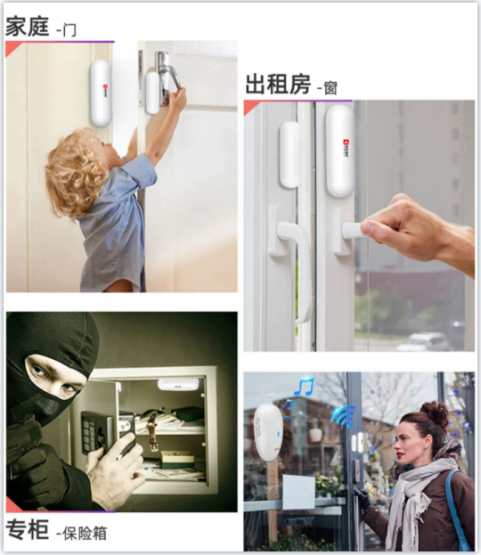 門磁報警器應(yīng)用范圍也挺廣,可以根據(jù)用戶的需求安裝在門窗、抽屜、保險柜,車庫門、窗戶、衣柜等地方。