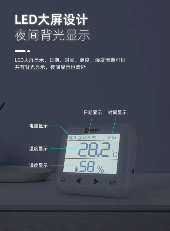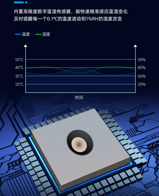 它可實時感知環(huán)境溫濕度變化。屏顯精度方面,溫度可控制在±0.1℃范圍,濕度可控制在±1%RH范圍。