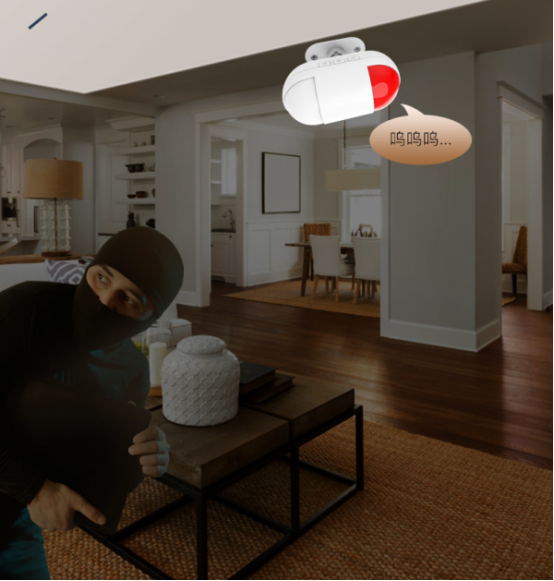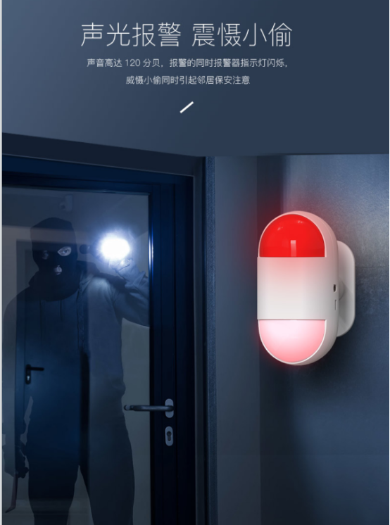 夜晚當(dāng)報警器使用時,只要紅外探測器(內(nèi)置或外置的)探測到有人時,就會發(fā)出刺耳的報警聲嚇退入侵者,同時提醒鄰居,給用戶帶來更貼心更放心的安全保障。